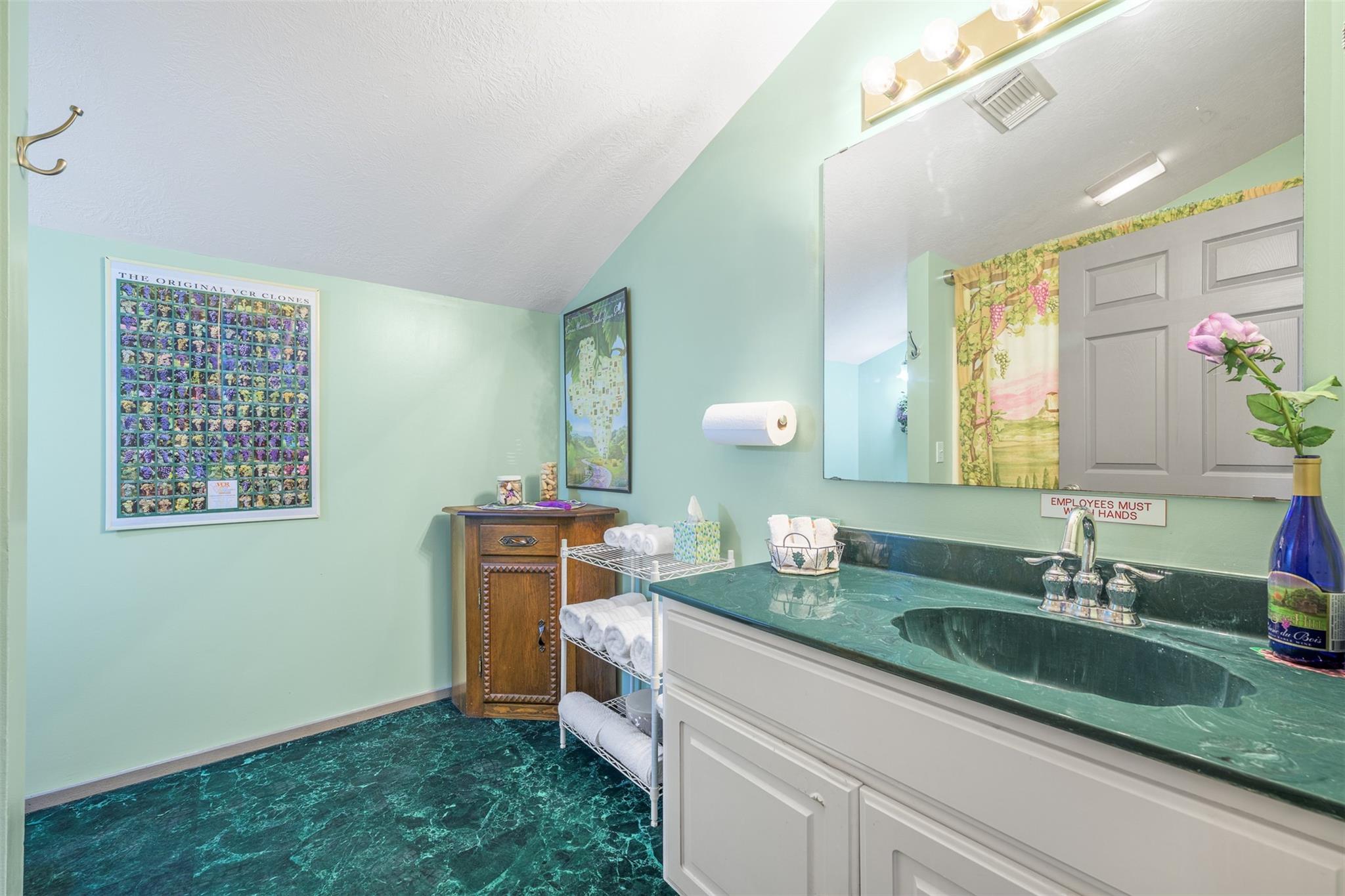 The main building offers a flexible layout with two levels of adaptable space. The upper level, which once served as the winery's tasting room, now features two bedrooms, two full bathrooms, common area, and a kitchenette. The lower level wine cellar, could easily be converted into a spacious living area, game room, or retail space. Outside, you'll find a detached carport and plenty of room for entertaining or expansion.