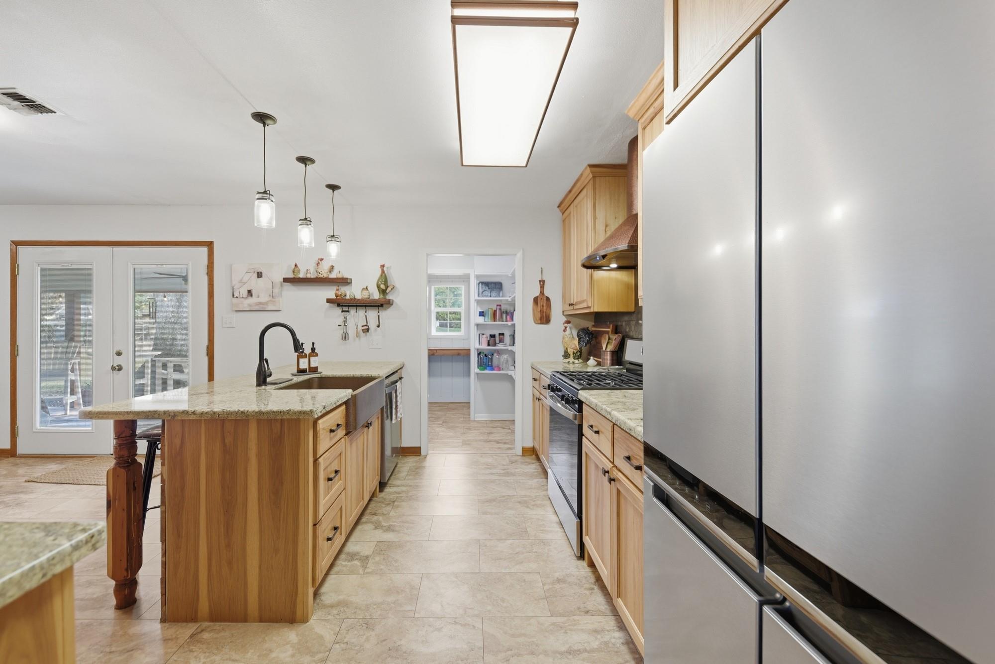 This 3-bedroom home is filled with natural light, while both bathrooms offer spa-like finishes with designer tile and warm stained wood accents. The kitchen is a dream with custom cabinetry, premium appliances, high-end finishes, and a pantry laundry room addition.