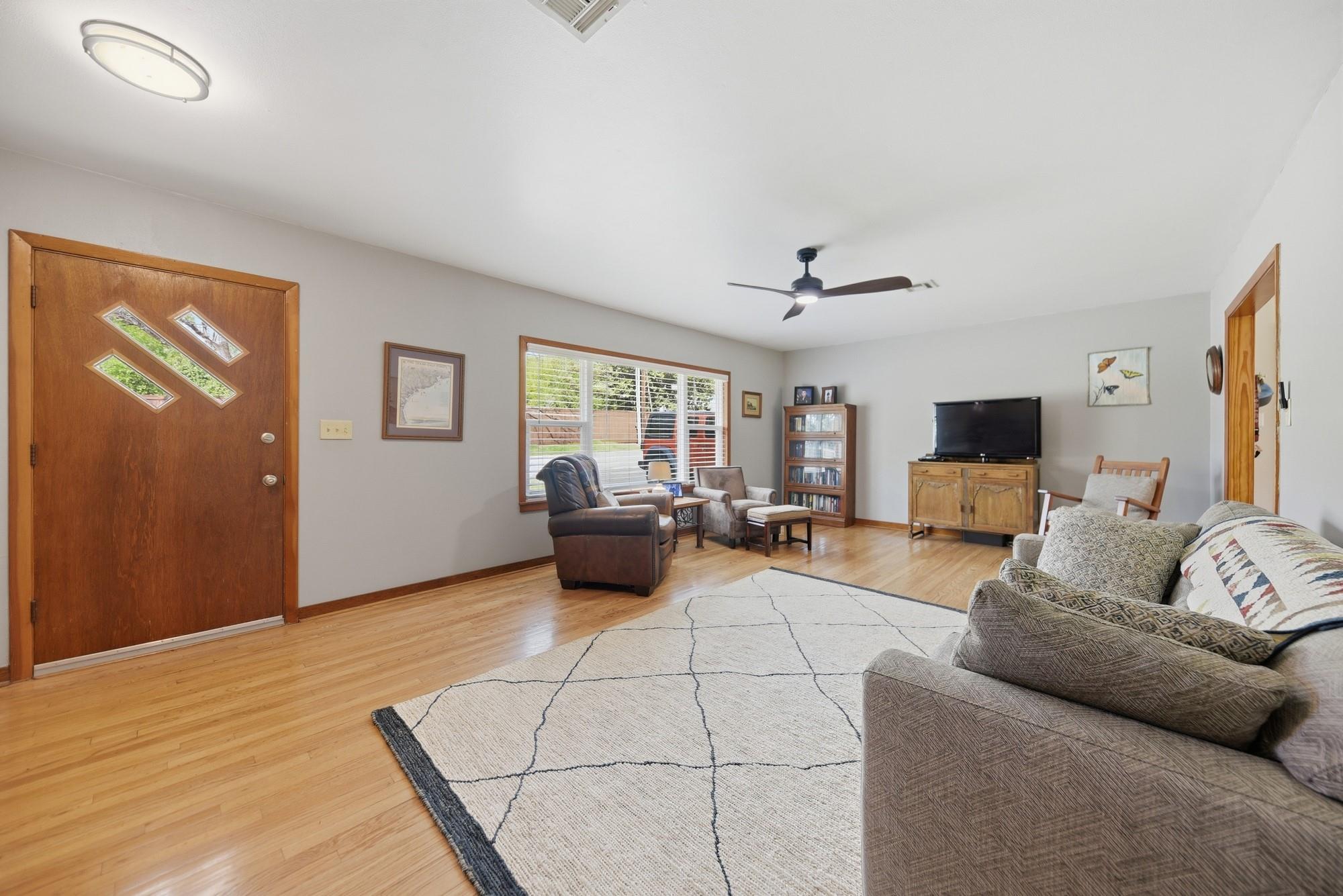 This property also features an RV slab with carport and extra driveway, landscaping with a French drain system, and major system upgrades including PEX plumbing, a tankless water heater, spray foam insulation in the attic, and refinished wood floors.