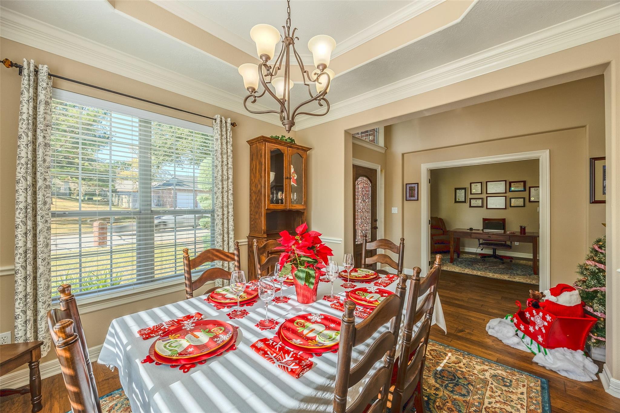 A stunning two-story den showcases floor-to-ceiling windows overlooking the pool, a striking fireplace, and access to the formal dining room. The office just off the entry adds valuable workspace, and the island kitchen is a standout with Kent Moore custom cabinets, an impressive gas double oven/range, and the high-end finishes you'd expect in a true gourmet kitchen.