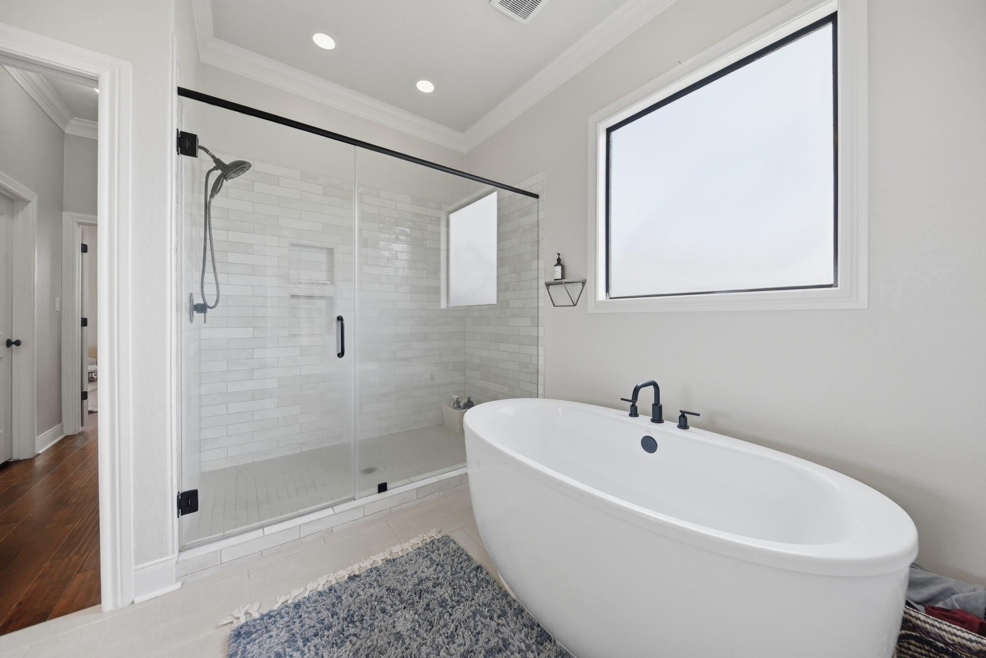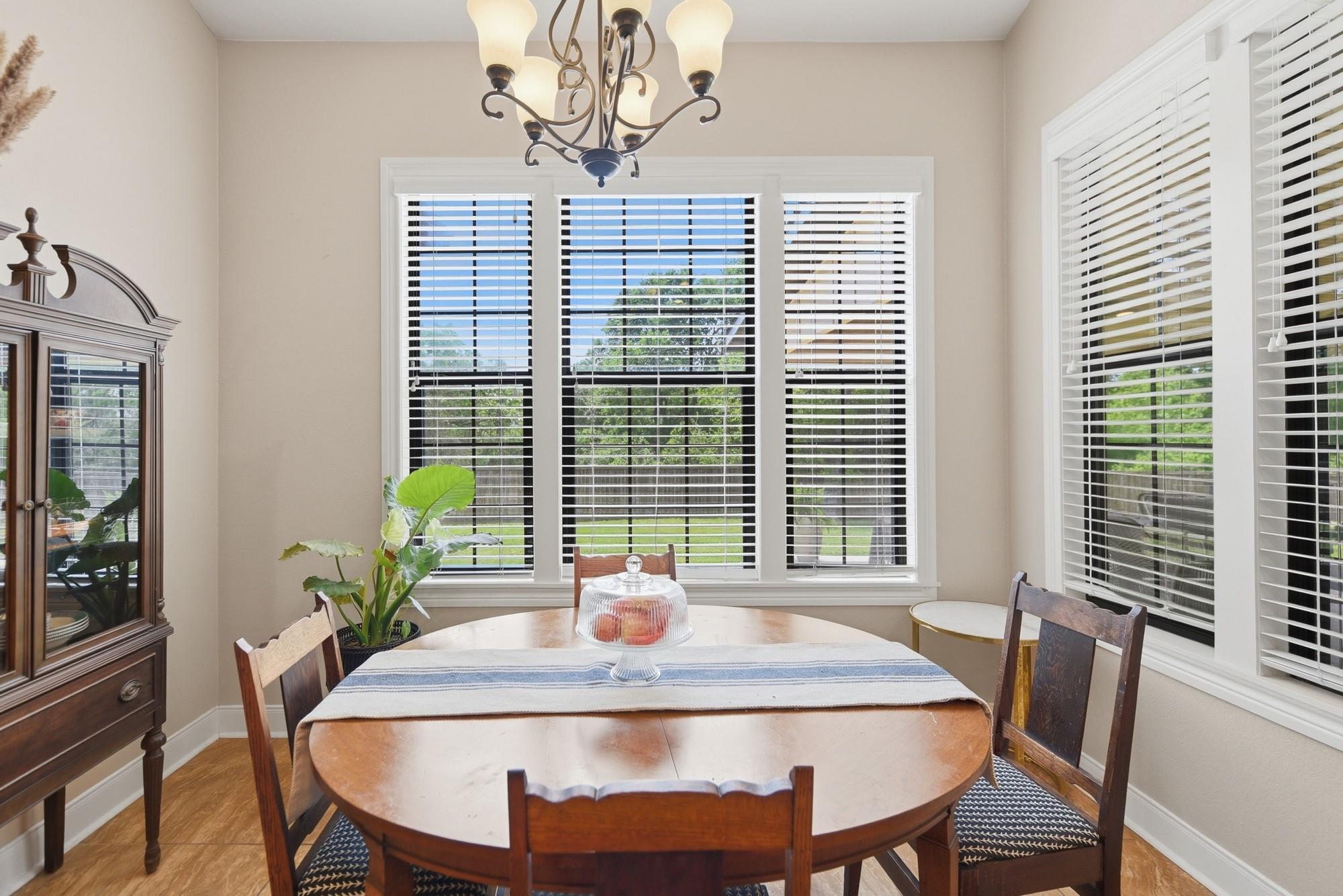 Inside, the home features a thoughtful layout with a private primary wing complete with a remodeled bathroom. The custom kitchen includes granite countertops, abundant cabinet storage and counter space. High ceilings, wood-grain composite flooring, a striking wood-burning fireplace, and well-placed windows fill the home with natural light.