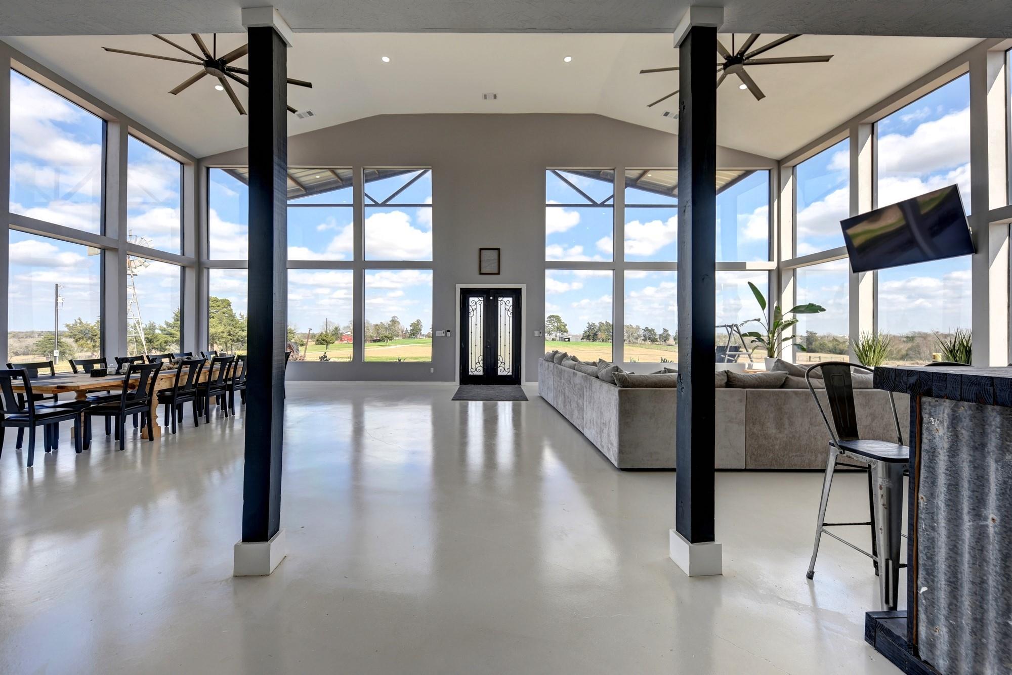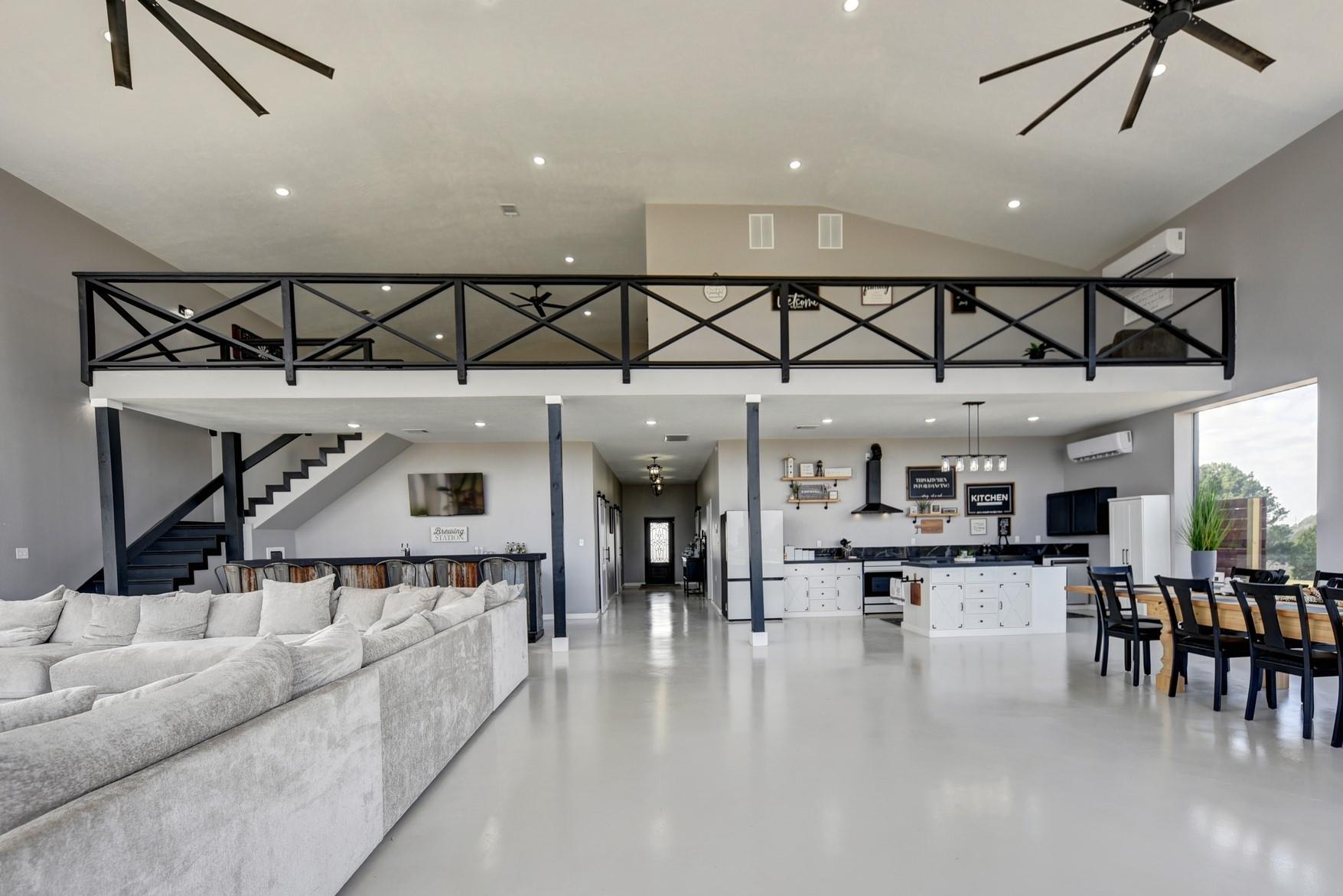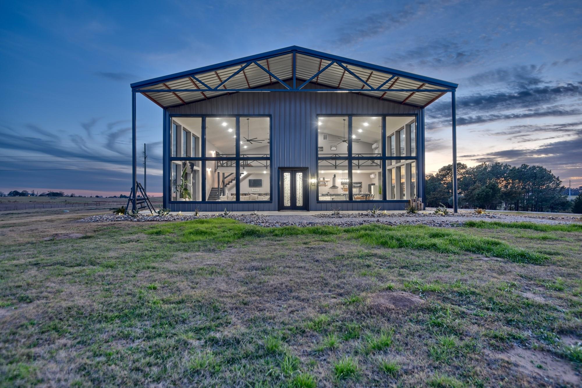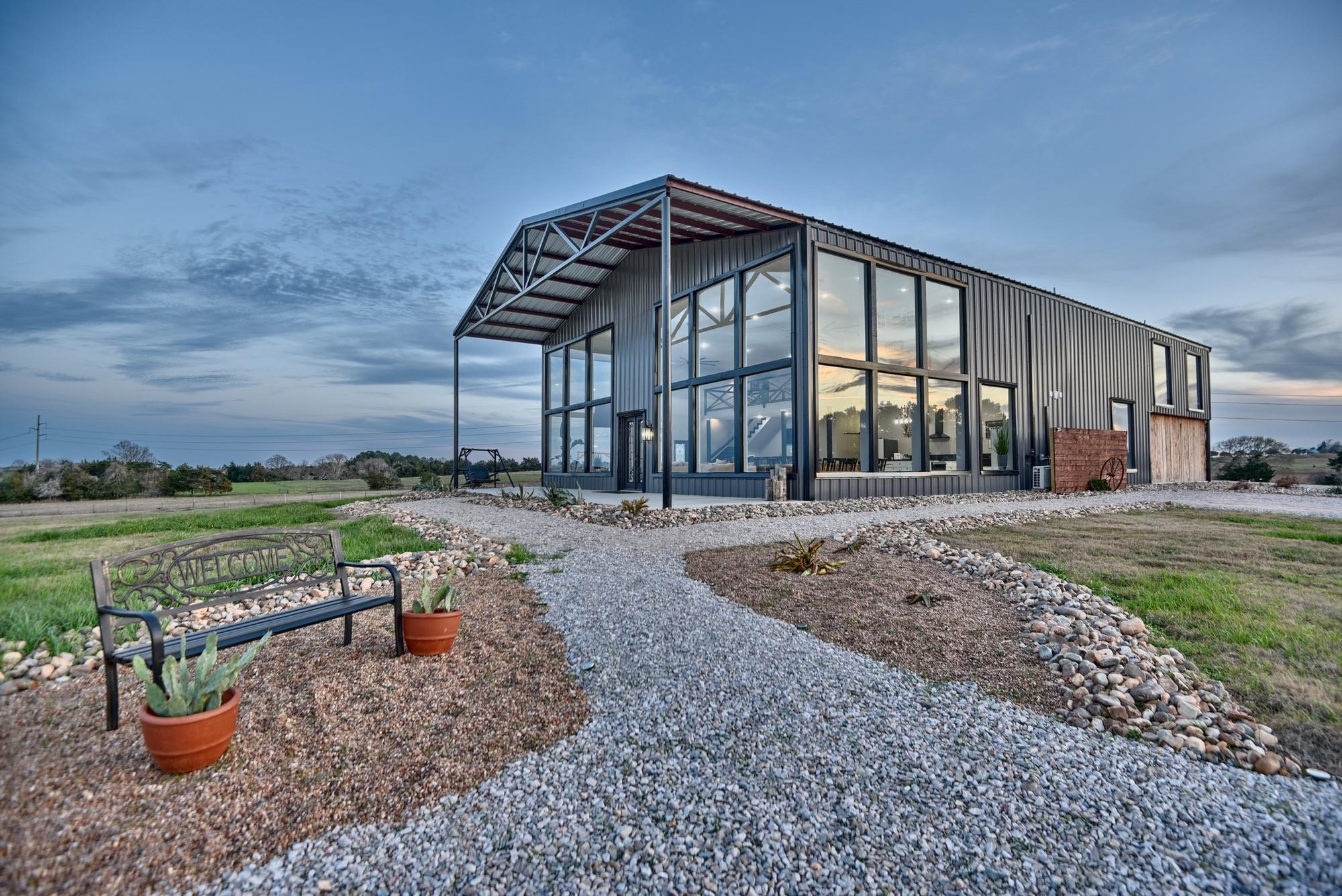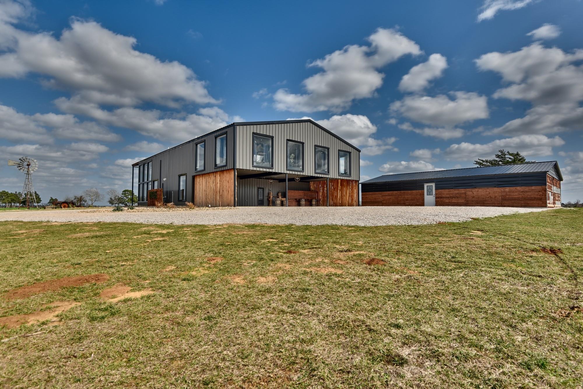Whether you're seeking a luxurious full-time residence, a weekend getaway, or a versatile event venue, 3561 Post Oak Point Road delivers it all. This exceptional property combines expansive acreage, a newly constructed custom barndominium, and breathtaking countryside views. Enjoy the freedom of unrestricted land use, offering endless opportunities to tailor the property to your unique vision. The 4,500 sq ft barndominium sits on 25.623 acres in New Ulm, TX, features 34 oversized energy-efficient windows, 20' ceilings, a cozy fireplace, and a custom bar. With 5 bedrooms, including a lavish 1200 sf primary suite with a private balcony, this home is designed for comfort and entertaining.