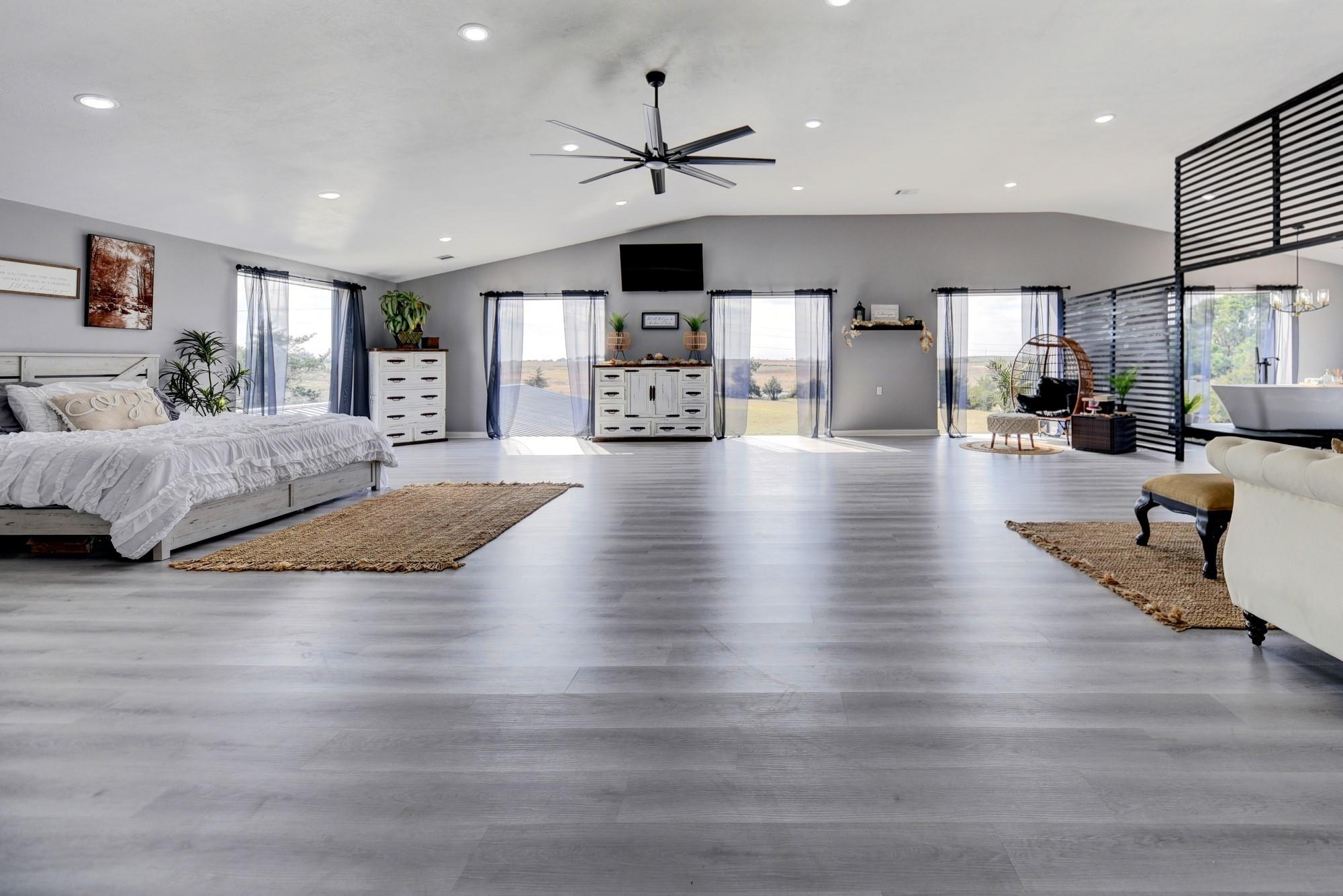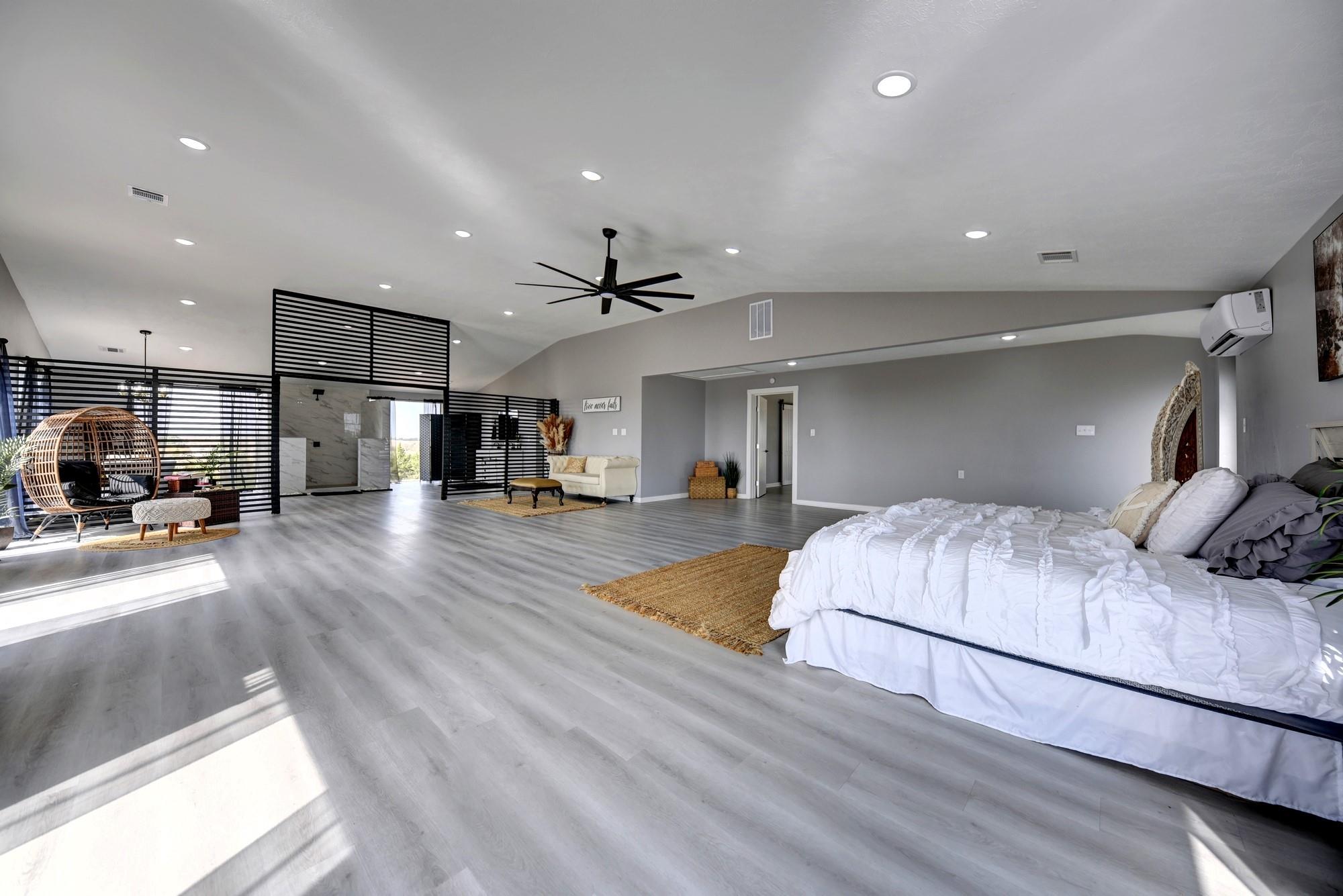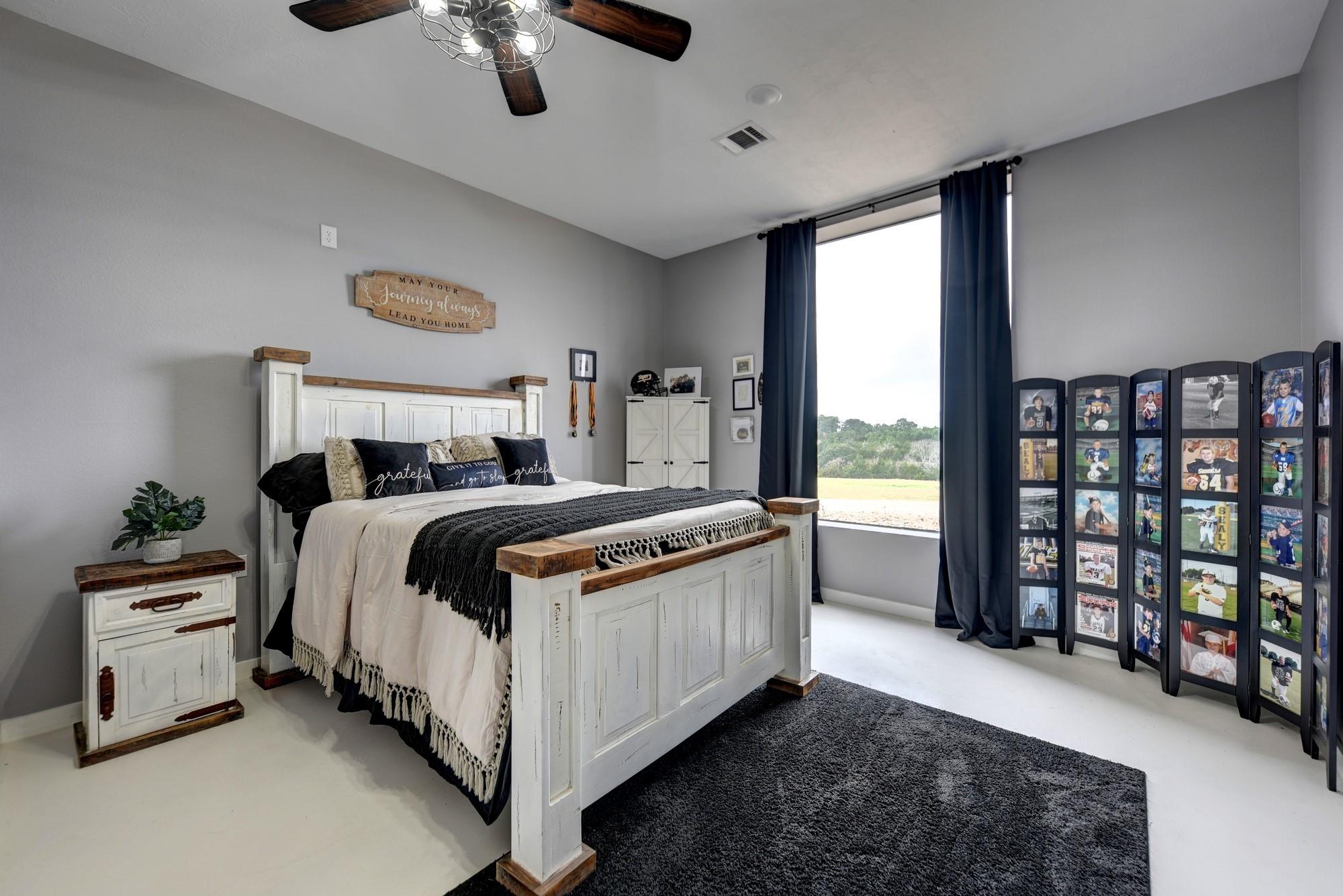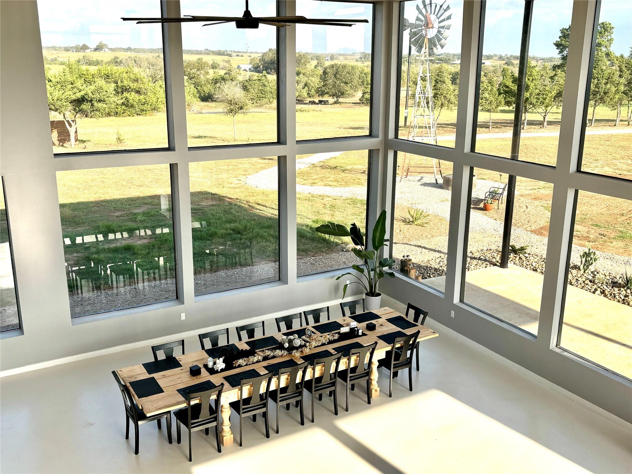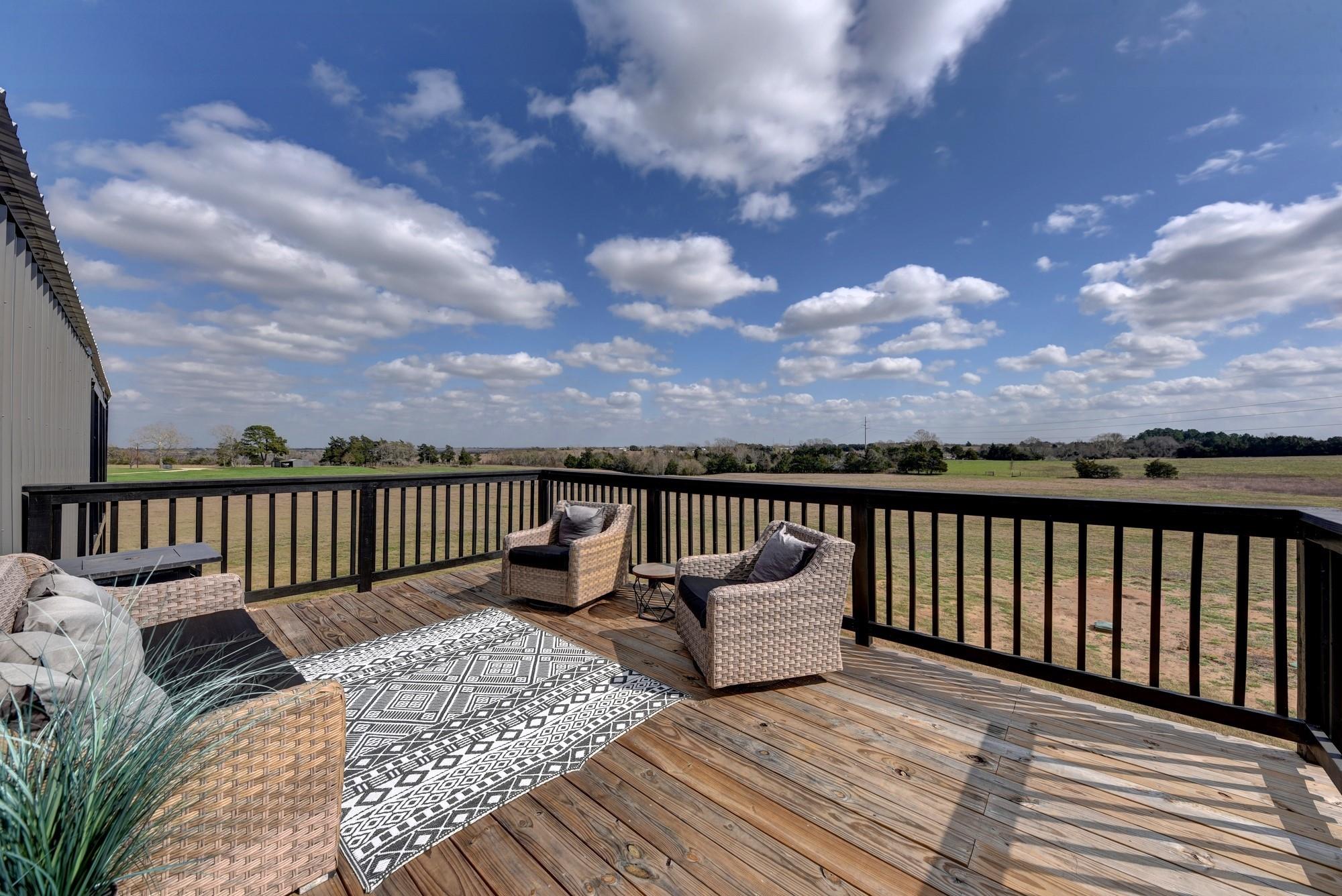 Whether you're seeking a luxurious full-time residence, a weekend getaway, or a versatile event venue, 3561 Post Oak Point Road delivers it all. This exceptional property combines expansive acreage, a newly constructed custom barndominium, and breathtaking countryside views. Enjoy the freedom of unrestricted land use, offering endless opportunities to tailor the property to your unique vision. The 4,500 sq ft barndominium sits on 25.623 acres in New Ulm, TX, features 34 oversized energy-efficient windows, 20' ceilings, a cozy fireplace, and a custom bar. With 5 bedrooms, including a lavish 1200 sf primary suite with a private balcony, this home is designed for comfort and entertaining.